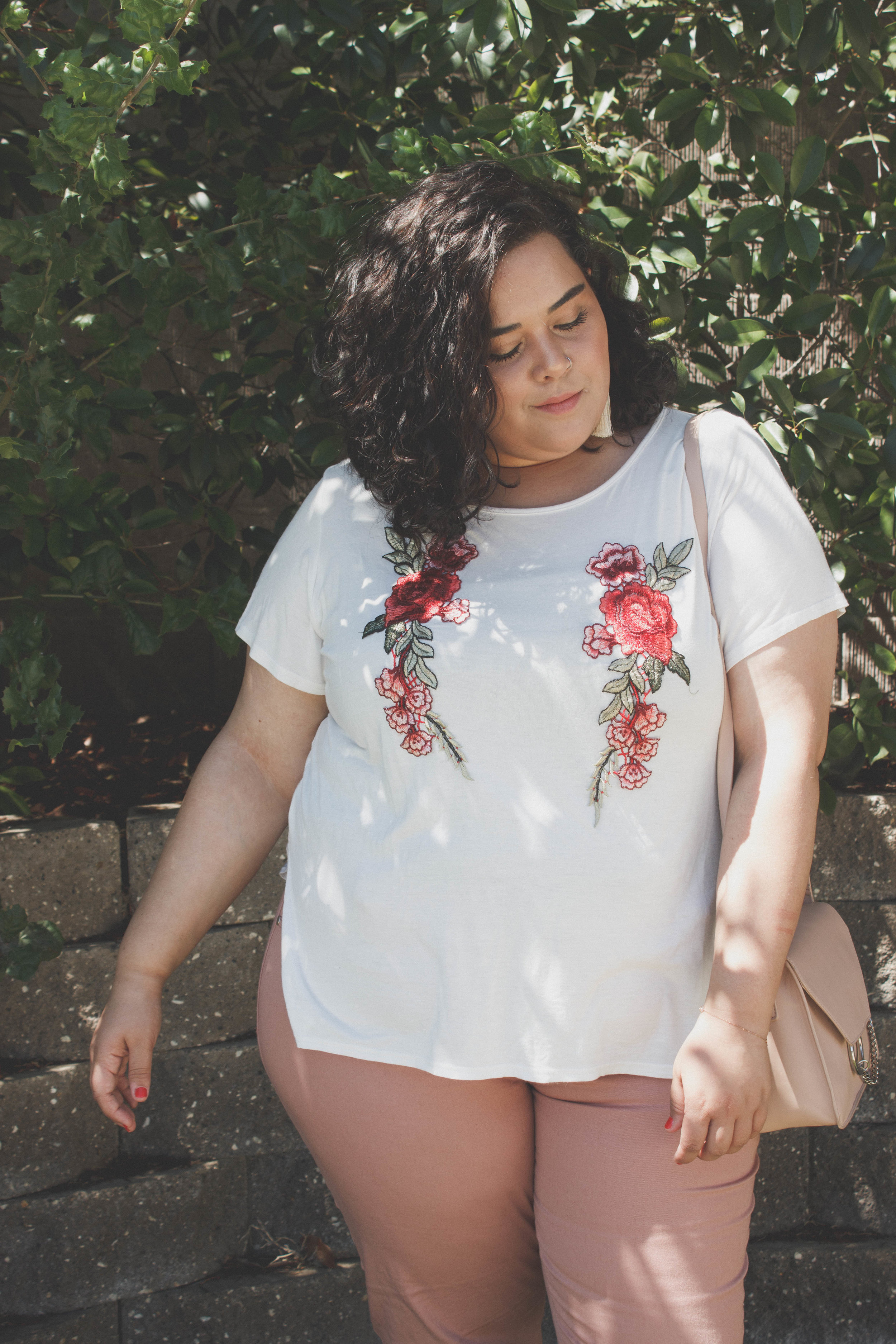 As for the look's deets, I wanted to put together something mauvy and romantic with the pants Forever 21 sent me. I pulled that mauvy vibe from the pants and tied it together with an embroidered rose top ( a major trend this Summer season BTW) and these nude sandals. Topped it off with this ASOS bag and it came together effortlessly. Perfect outfit for dinner with your girlfriends. Even if you’re not really down for short sleeves, there are plenty of long sleeve embroidered tops circling the e-commerce world that would work perfectly with these pants and I've linked them below.
